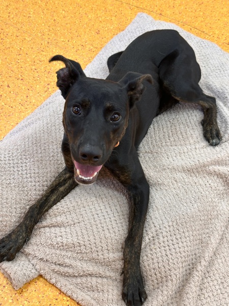 Bonnie is learning her manners and might sneak a few cuddles by hopping into your lap, but she's working on keeping all four paws on the floor. She may also enjoy having a cozy crate of her own - a safe little den when she needs some quiet time.