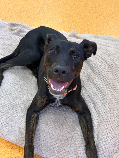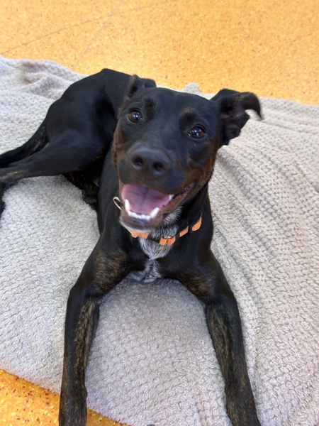 Bonnie is a gentle, timid girl who will thrive in a calm home with older, respectful children who understand giving her space. She'll need patient support as she builds confidence. Bonnie is social with other dogs but very soft in her approach, often appeasing and polite. She must meet any resident dogs at the time of adoption. She has previously lived with a smaller dog and may do best with a calm, tolerant canine companion, as she can gain confidence by learning from another dog in the home.