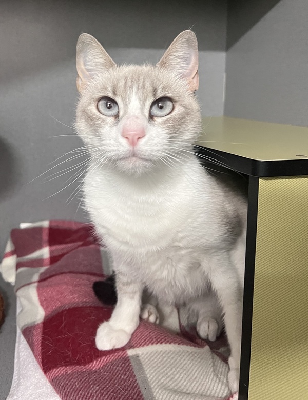 This stunning 2-year-old Snowshoe mix is as beautiful as she is unique, with striking blue eyes that will capture your heart instantly.