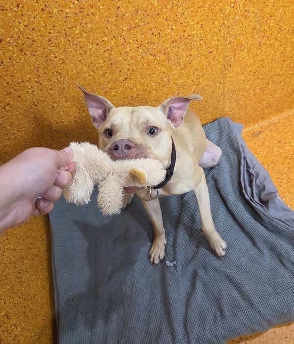 Stanley has a boisterous, bully‑style play vibe with other dogs, so any dog friend will need to be playful, tolerant, and equally fun. He must meet any resident dogs first ensure a good match