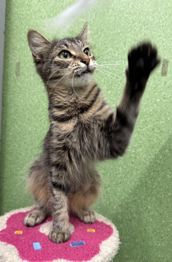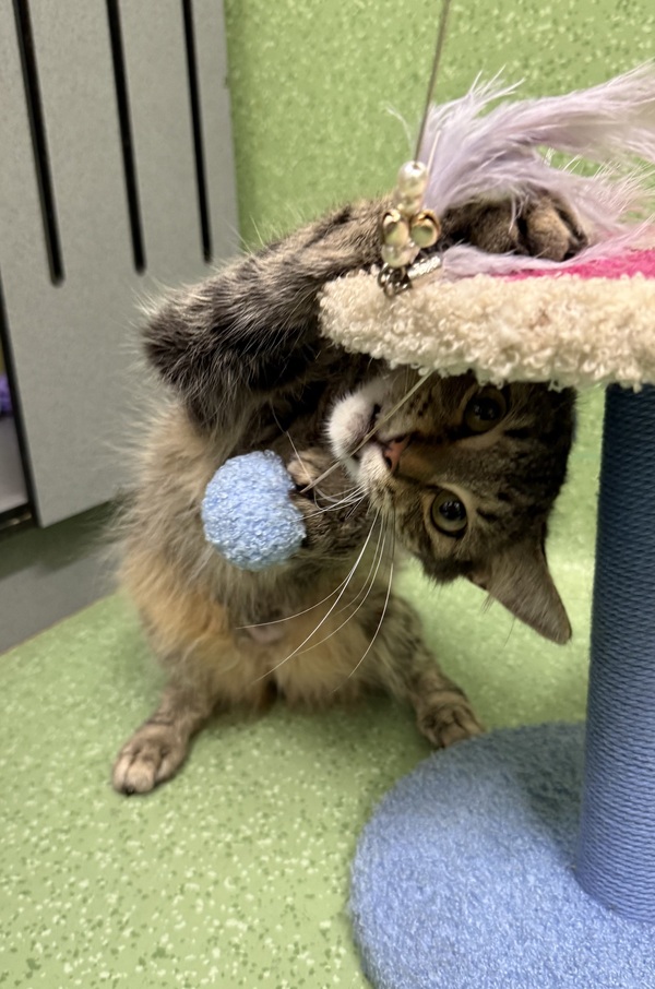 Play therapy is recommended to provide an appropriate outlet for her energy and frustration. Penelope would thrive in a home with teenagers who can read basic cat body language and understand when to give her space, helping her feel safe, calm, and happy.