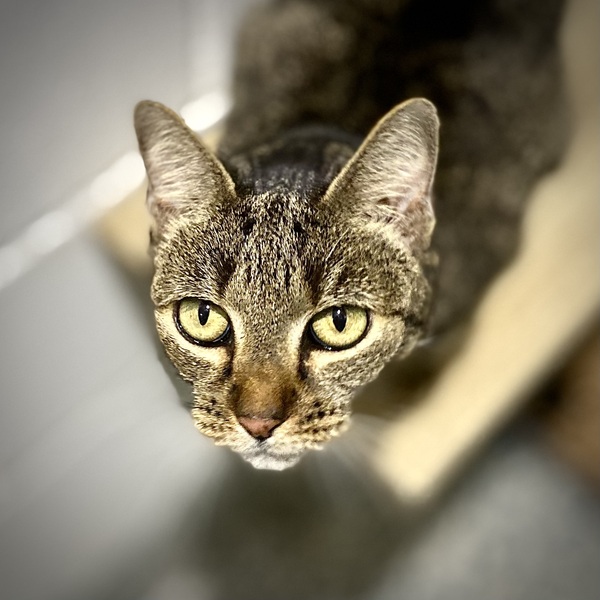 Please meet Marigold - our dark brown tabby lady with big yellow-green eyes. Marigold is a vibrant, happy lady who is always looking for friendly human company. She can have quite a conversation with you because she's never short of a 'meow' or two when she sees you. Marigold is the perfect company for you inside your home, as there's no doubt she'll supervise your work from her warm, comfy bed. When you arrive home, she'll be inside waiting to greet you. She is a very special, senior lady. Her needs are:-