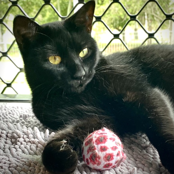 Black cats are known for being quirky and different - Stellar is all that! She exhibits behaviours that are more dog-like e.g. wagging her tail, delighting in your presence and rolling on the floor in enjoyment. We think she's capable of learning many commands, if you have the patience to teach her. Stellar is very inquisitive and she will love exploring inside your home. She will enjoy finding little surprises (e.g. snacks) that you have planted for her to find and life will become lots of fun. Therefore, if you would love to have a beautiful, sleek black cat in your life, meeting Stellar is a good place to start. She shows a lot of love for her human guardians and responds with purrs and affection. Recommendations for her care:-