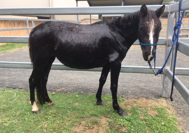 When our Inspectors saw Tennessee the pony roaming at the property, she was living in amongst a large amount of rubbish, hazards and dead animals. She also was significantly underweight and didn’t have access to appropriate food, water or shelter. Poor Tennessee was also lame in her left hind leg and veterinary assessments showed she had dental disease and was close to being emaciated. She looks like a totally different pony now and has since been adopted!