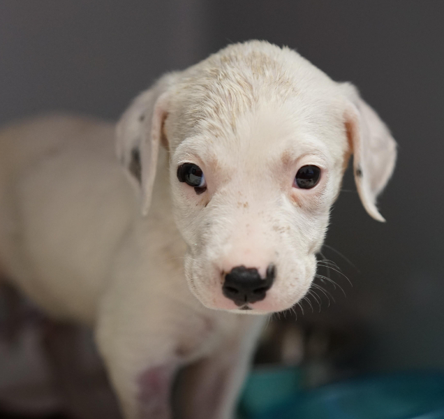 Once in our care, the veterinary team were quick to act. Vet Nurse Rohan said, “They were in terrible condition, close to death. One puppy was collapsed with agonal breathing. They were emaciated, dehydrated and had thick, bloody diarrhoea all over their coats. The most alarming symptom was the colour of their gums. Gums should be a nice healthy pink colour, but these pups’ gums were a stark white, the colour of a sheet of paper.”