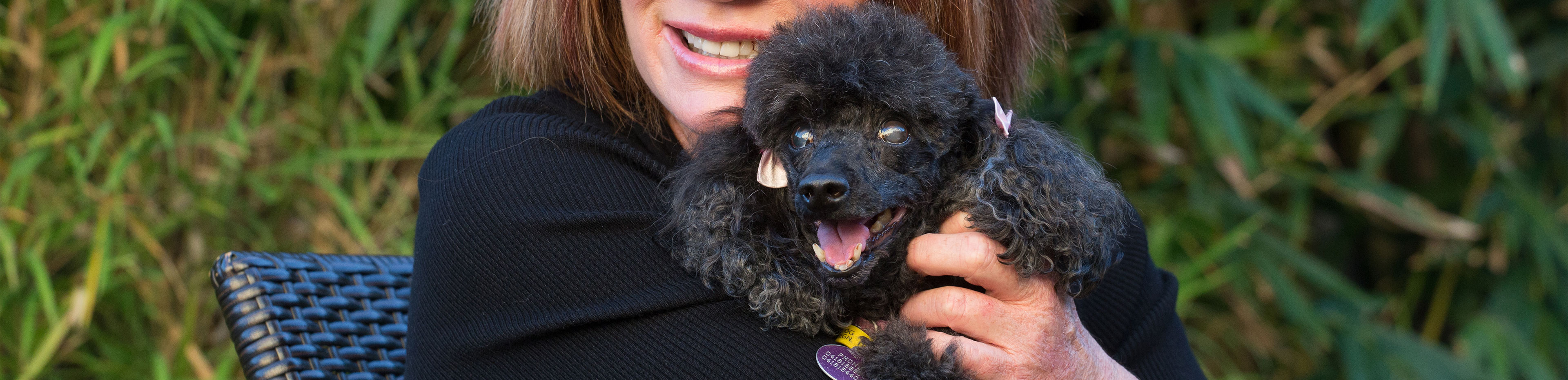 RSPCA Qld Ambassador Jack Hingert cuddles into his small rescue dog Chloe