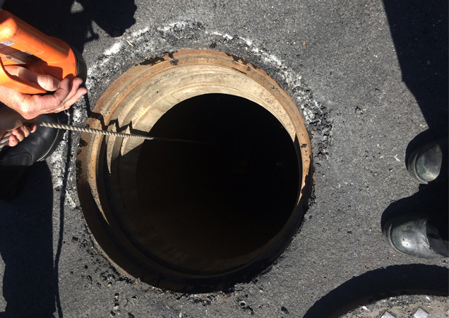 As this was a technical rescue in a confined space, Clare contacted Queensland Fire and Emergency Service (QFES) and Rockhampton Regional Council to assist with accessing the drain. After an extensive search of the stormwater system, rescuers opened a manhole in the middle of the road and located the cat on a ledge approx. 12ft down in the deep drain with water running underneath.