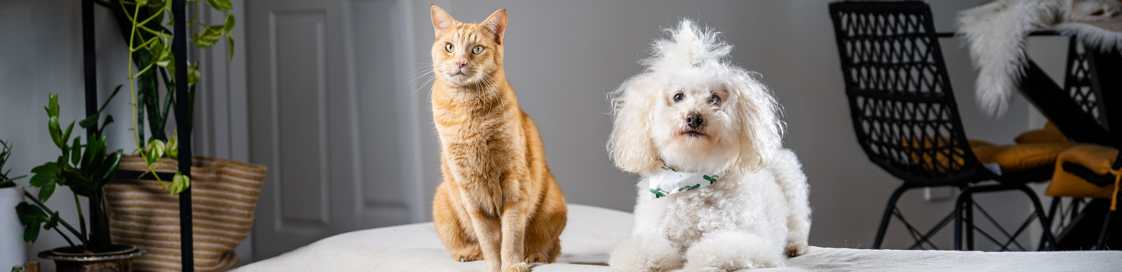 Ensure your pet has plenty of enrichment when you’re not home: like long lasting chew toys and treats for dogs, and cat scratching posts for cats. Check out a DIY cat scratching post, wand toy and snuffle ball.