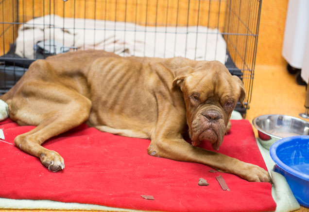 I heard the vets saying "a body score of one". You only had to look at this poor bag of bones, too weak to stand, to know the outcome may not be a good one. I choked. You'd think that even with the heads up that a dog is in "a very bad state", you can anticipate what you're about to see. My heart broke. My blood boiled. I saw red, I felt empathy, I felt helpless.