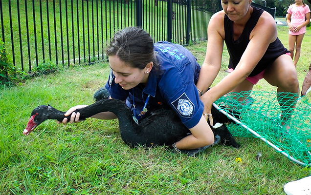 Instead, Sam gently navigated the injured swan away from the nest, all the while hearing the mother swan hissing threats at her in an attempt to protect her family. Of course, treating the father was the only way to effectively protect their family.