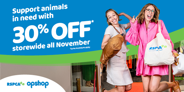 Get 30% off* storewide at RSPCA Op Shops for all of November!