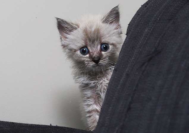 Above: Jolie, a three-year-old Kelpie cross was abandoned with her nine newborn puppies. Pickle Berry was a tiny, orphaned kitten was lost and got stuck in someone's wall.